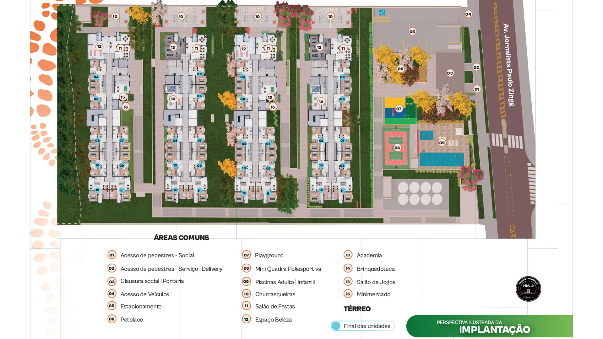 O empreendimento Livus Jaraguá é composto 764 unidades autônomas enquadradas como HIS-2 (Habitação de Interesse Social), devidamente identificadas no Memorial de Incorporação registrado sob o R.17 da matrícula nº 92.815, do 16º Cartório de Registro de Imóveis desta Capital, nos termos da Lei nº 4.591/1964. Para essas unidades autônomas, devem ser observadas as regras de enquadramento de renda dos adquirentes sendo exigida renda familiar mensal máxima de até 6 (seis) salários mínimos, ou de até 1 (um) salário mínimo per capita mensal. Adquirentes com renda mensal superior aos limites mencionados poderão adquirir as unidades autônomas exclusivamente para fins de investimento, devendo destiná-las à locação social e respeitar os valores estipulados, conforme previsto na Lei Municipal nº 16.050/2014 (Plano Diretor Estratégico), no Decreto Municipal nº 63.728/2024 e no Decreto Municipal nº 63.130/2024. Tais informações estão disponíveis no plantão de vendas e nos contratos a serem firmados para a aquisição das unidades autônomas.